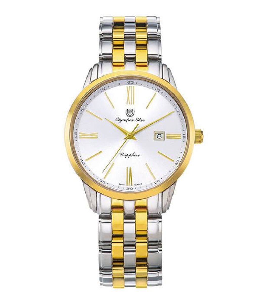 Olympia Star OPA58061MSK-T trắng được thiết kế theo phong cách sang trọng với màu vàng chủ đạo, kết hợp với mặt tròn to nền trắng lịch lãm. Thiết kế màu vàng nhưng lại không hề đem đến cho người dùng cảm giác phô trương, chói lóa mà đem đến một vẻ đẹp sang trọng tạo ấn tượng mạnh đối với các quý ông.
