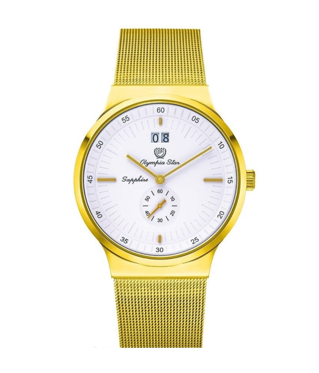 Đây là mẫu đồng hồ mặt tròn nền trắng thanh lịch, nổi bật với tông vỏ và dây vàng kim sang trọng, mang đậm phong cách cổ điển của thương hiệu Olympia Star. Mẫu OPA58078MK-T được thiết kế tinh tế với chi tiết small second (kim giây nhỏ tách riêng ở góc 6 giờ) – điểm nhấn độc đáo giúp tổng thể thêm cân đối và phá cách.